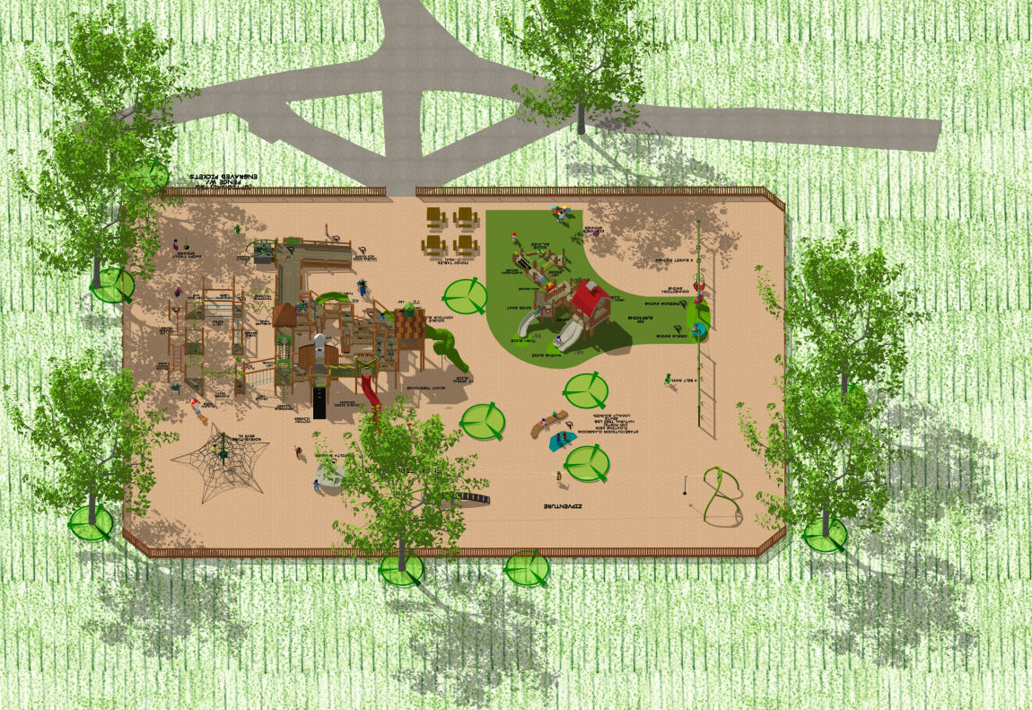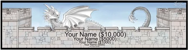Artist’s Rendition. The drawings of the dragon donor walls are in black & white, but they will be in color at the playground in 2026.